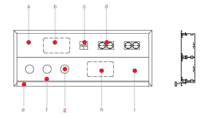 • 无、有一个或两个 DIN 标轨,可同时组合照明构件和导轨构件。