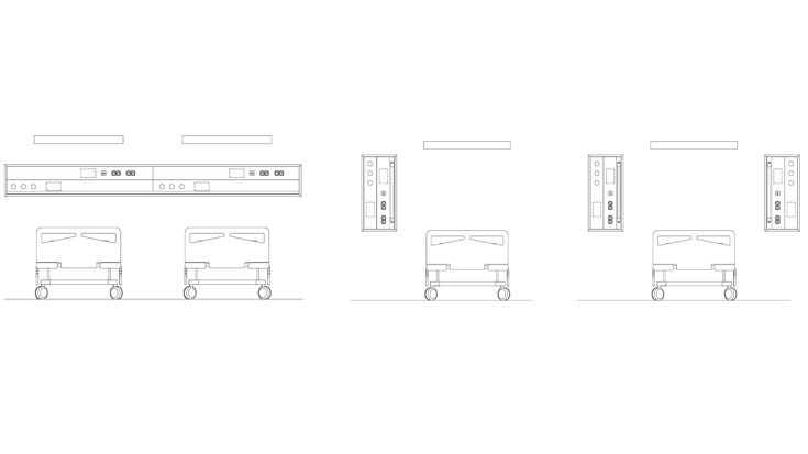 墙壁嵌入配置(嵌入式安装)提供了一系列可以满足所有建筑和技术要求的解决方案。从单床到多床,这些装置可以垂直或水平配置一个、两个甚至多个的构件。还可以提供连续的双床解决方案,仅使用一种解决方案就可以为两张床提供服务。