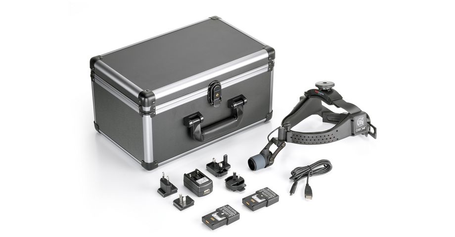 包括头灯 MedLED、运输箱、USB 充电线、电源(包含欧盟、美国、英国、澳大利亚的转接器)和 2 节电池(锂聚合物)