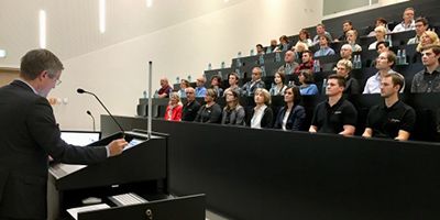 Christian Leibinger begrüßte die Gäste im Hörsaal des Besucherzentrums und gab einen Überblick über die Unternehmensgruppe und ihre Entwicklung. Er betonte: „Das Thema Nachwuchskräfte spielt bei der KLS Martin Group eine wichtige Rolle. Wir bilden unsere Azubis für den ‚Eigenbedarf‘ aus und konnten auch in diesem Jahr wieder 15 neue Auszubildende gewinnen.“ Anschließend ergriff Andreas Hupe, kaufmännischer Leiter bei Gebrüder Martin, das Wort und betonte, wie wichtig ihm der Kontakt zu den Eltern sei und wie sehr er sich freut, allen einen Blick hinter die Kulissen geben zu können. „Der Elternnachmittag ist eine tolle Gelegenheit, die Familien unserer Nachwuchskräfte kennenzulernen und mit diesen ins Gespräch zu kommen.“