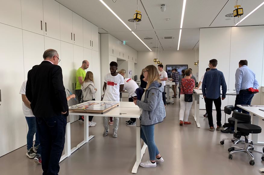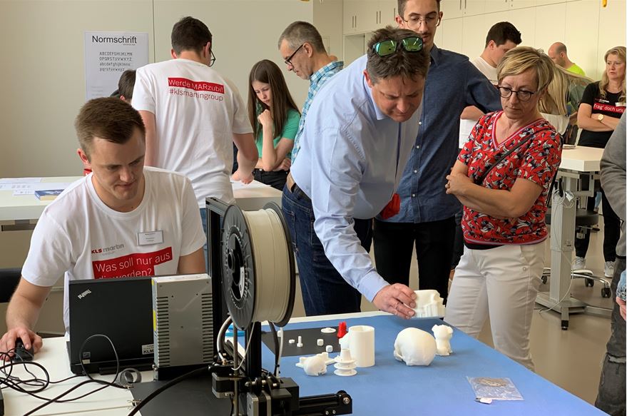 Im Obergeschoss konnten sich die Besucher über die Ausbildungs- und Studienmöglichkeiten informieren. Auch hier stand ein praxisnaher Einblick in den Arbeitsalltag im Fokus. Auszubildende und Ausbildungsleiter stellten die Berufe nicht nur vor, sondern zeigten unter anderem am 3D-Drucker oder CAD-Programm wie es ist in dem jeweiligen Beruf zu arbeiten und welche Aufgaben damit verbunden sind.