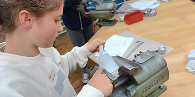 Gefertigt wird ein Briefbeschwerer als Würfel aus Metall, bei dem die Schüler selbst feilen, bohren oder Gewinde schneiden dürfen. Herr Schmid erklärt, dass es dabei nicht nur auf die reinen Bearbeitungskenntnisse ankommt, sondern auch darauf, möglichst genau und präzise zu arbeiten: „Schließlich dürfen auch bei der Fertigung, zum Beispiel von chirurgischen Instrumenten, kaum Toleranzen vorkommen.“
