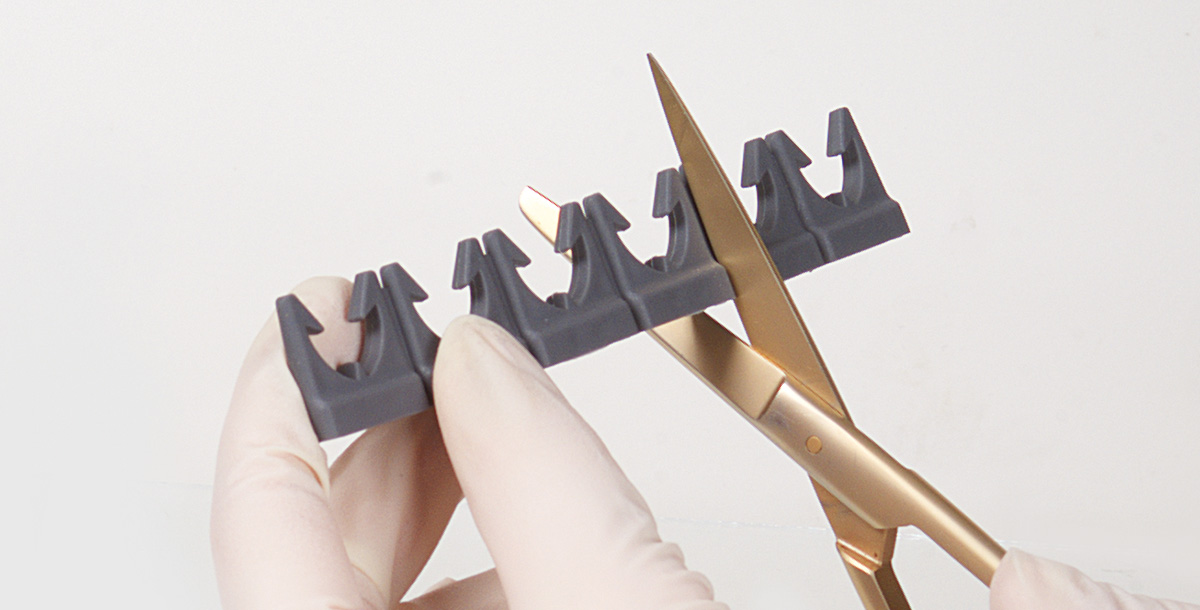 Unsere Fixierelemente bieten ein Maximum an Flexibilität für nahezu alle möglichen Kombinationen. Die Fixierelemente werden in zusammenhängenden 6er- oder 3er-Einheiten mit drei Halteclips geliefert. Sie können jedoch problemlos mit einer Schere die Einheit trennen – ganz wie Sie es brauchen. Ob quer, längs oder diagonal – Sie können Ihre Instrumente in jeder Hinsicht fixieren. Und das alles werkzeuglos. Einfach klicken und fertig.