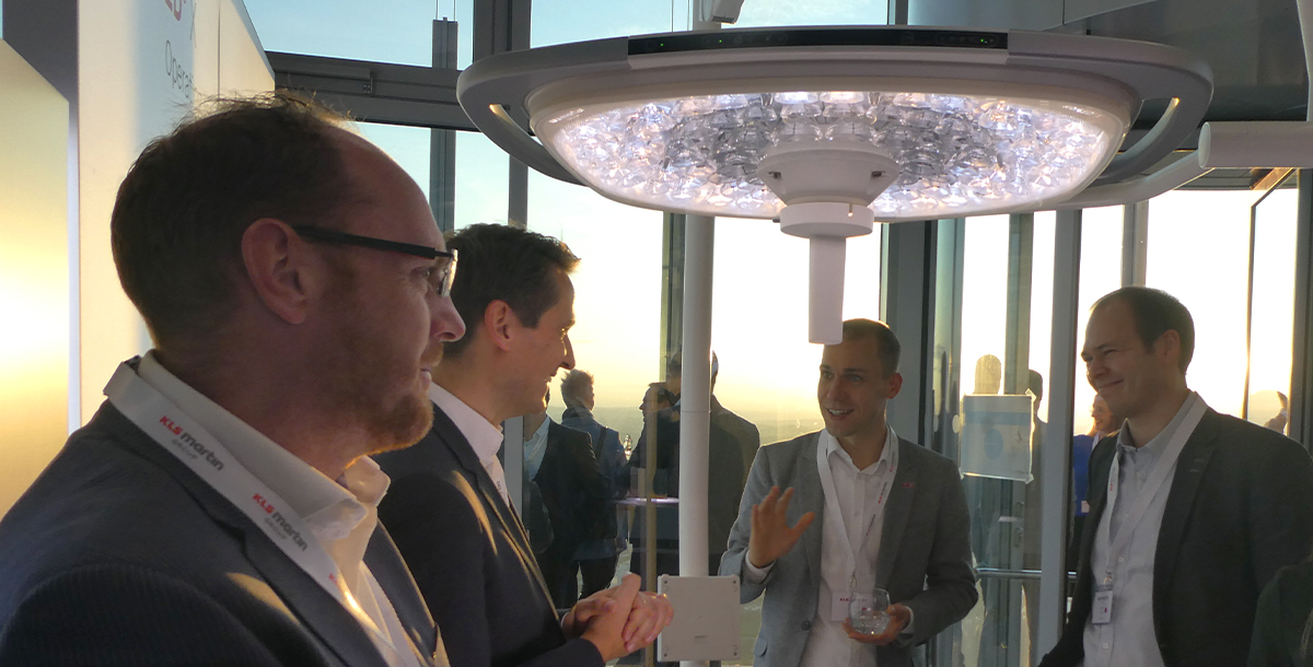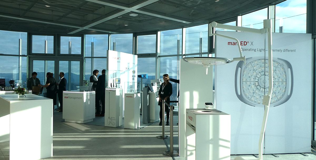 Nach der Begrüßung in unserer KLS Martin WORLD ging es per Shuttlebus nach Rottweil zum ThyssenKrupp Testturm. In 232 m Höhe präsentierten wir auf einer eigens aufgebauten Hausmesse neue Produkte und Dienstleistungen, wie z.B. unsere neue OP-Leuchte marLED® X, die Produktlinie smartLine für die Hochfrequenzchirurgie, unser Instrumentenmanagement marManagement sowie Neuheiten aus dem Bereich der MKG- und Handchirurgie, wie L1® MI Orthognathics, L1® Mandible ReconGuide, IPS Implants® Preprosthetic als auch IPS Implants® Radius- und Unterarmrekonstruktion.