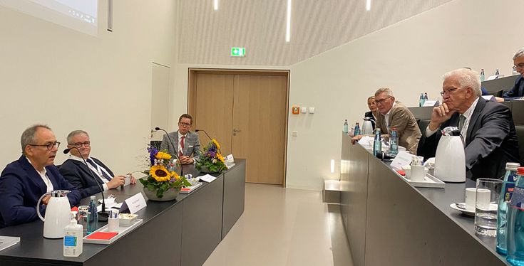 Herr Kretschmann war hier besonders an den Auswirkungen der MDR für die klinische Anwendung als auch für die Medizintechnik interessiert. Insgesamt stuften die Teilnehmer aus Medizintechnik und Medizin die MDR und den mit ihr einhergehenden hohen bürokratischen Aufwand als innovationshemmend ein. Prof. Hoffmann kritisierte insbesondere den erhöhten dokumentarischen Aufwand für Medizinproduktehersteller auch bei Standardinstrumenten und die hohen damit verbundenen Kosten. Karl Leibinger und Michael Martin teilten diese Sichtweise. „Bei einer Produktneuentwicklung fließt ein Großteil der Ressourcen in die technische Dokumentation, die nicht immer einen Mehrwert für die Patienten bildet. In diesen Fällen, könnten die Ressourcen gezielter in die interdisziplinäre Entwicklung neuer Produkte investiert werden“, verdeutlichte Karl Leibinger.
