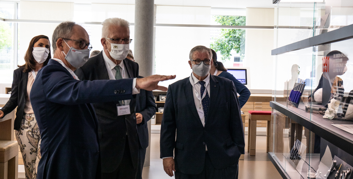 Im Zuge seiner Sommertour besuchte uns heute der baden-württembergische Ministerpräsident Winfried Kretschmann gemeinsam mit Landrat Stefan Bär, Oberbürgermeister Michael Beck sowie Vertretern des Staatsministeriums und Medical Mountains. Unter dem Motto „Digitalisierung und Individualisierung in der Medizintechnik“ wurden die gemeinsame Produktentwicklung mit klinischen Anwendern, Herausforderungen der europäischen Medizinprodukteverordnung für Medizin und Mittelstand sowie der Fachkräftemangel im ländlichen Raum diskutiert.