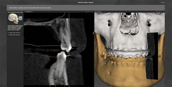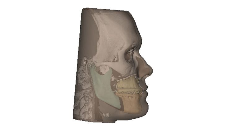 Accurate overlay of dental models to the CT scan allows for precise orthognathic planning and cephalometric analysis.