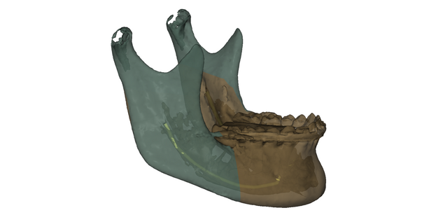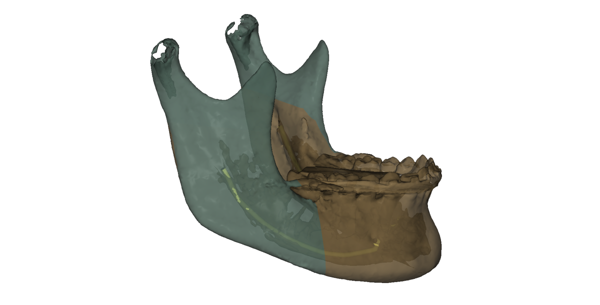 IPS® CaseDesigner offers a variety of views of the patient model. The bone-diffused view can be particularly helpful when determining osteotomy location and avoiding important anatomical structures.
