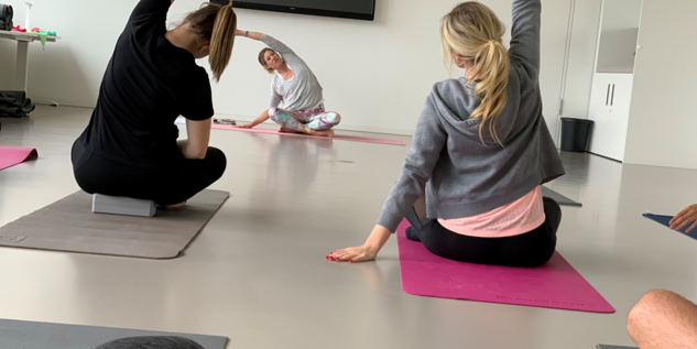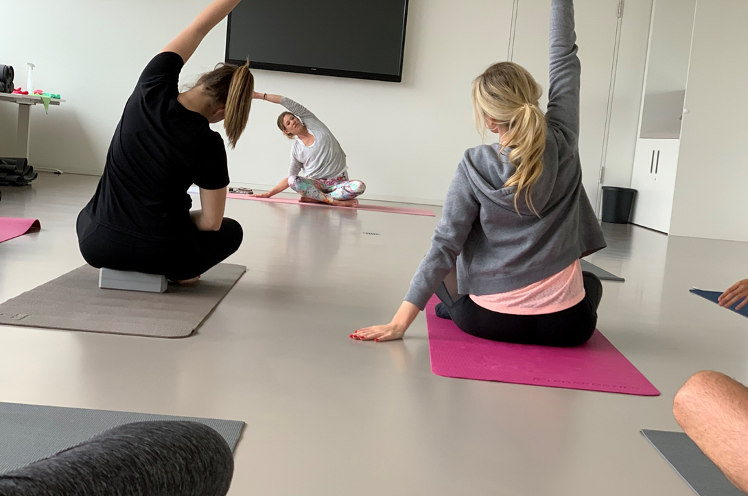 All yoga courses are led by Aline Aigner from hello balance. In addition to the relaxation exercises, Aline also provides knowledge on correct breathing technique and provides useful exercises that can be performed at the workplace.