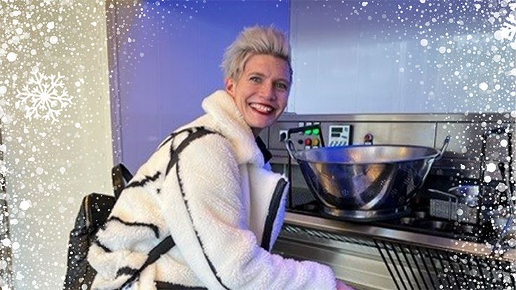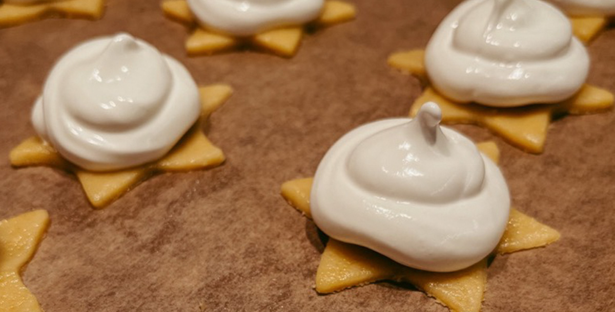Take the Panettone out of the oven and pierce the base with 4 skewers arranged in an X shape, then turn the Panettone upside down and leave it suspended in the air, placing the skewers on supports of equal height (books, pots, chairs, etc.) so that the upside-down Panettone does not touch any surface.