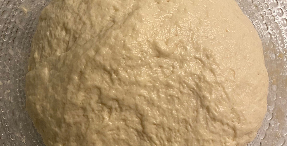 Remove the dough from the bowl and quickly beat it with your hands on a work surface before kneading it again by hand to give the dough the strength it needs to rise, giving it a few folds.
