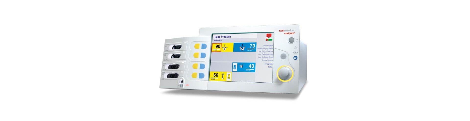 Las exigencias técnicas en la electrocirugía hoy en día son especialmente complejas y polivalentes. La tecnología innovadora, una manipulación segura y sencilla en combinación con un alto rendimiento cuentan entre las premisas más importantes que deben cumplir los aparatos quirúrgicos. Esto es exactamente lo que le ofrece el maXium®: El equipo dispone de una amplia selección de tipos de corriente de control preciso con los que puede escoger a partir de una multitud de aplicaciones como puedan ser el corte o la coagulación monopolar y bipolar.
