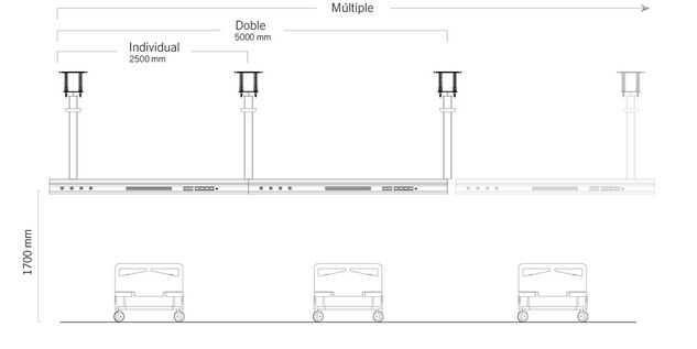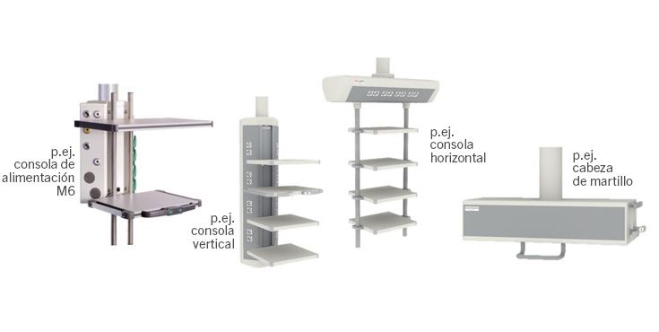 Disponible en tres longitudes, en el bastidor multifunción se pueden integrar diferentes componentes. Se pueden adaptar bandejas, cajones, pantallas planas y módulos de perfusión. Las bandejas y los cajones se pueden regular de forma continua en sentido vertical, adaptándose totalmente a las dimensiones de los aparatos que deben alojar.