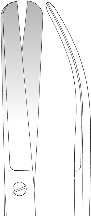 Gynecological scissors, standard, acc. to Sims, blunt/blunt, curved, length 23 cm