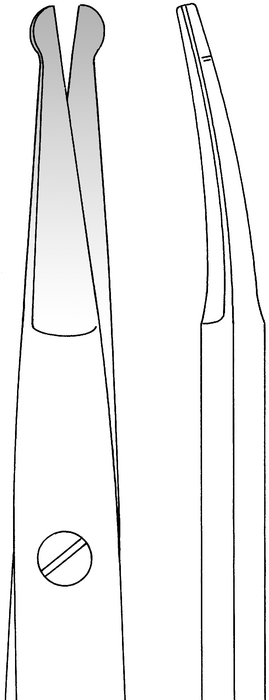 Neurosurgical scissors, standard, acc. to Strully, blunt/blunt, curved, length 22 cm