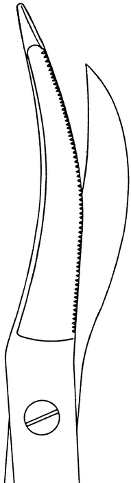 | Article text | Episiotomy scissors, standard, acc. to Waldmann, one cutting edge serrated, length 18 cm |