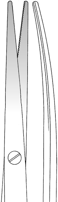 TC gold ligature scissors, curved, one tooth cuting edge, fine, length 18 cm
