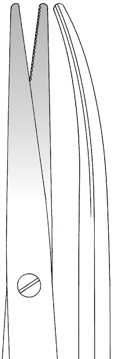 TC gold ligature scissors, curved, one tooth cuting edge, fine, length 20.5 cm