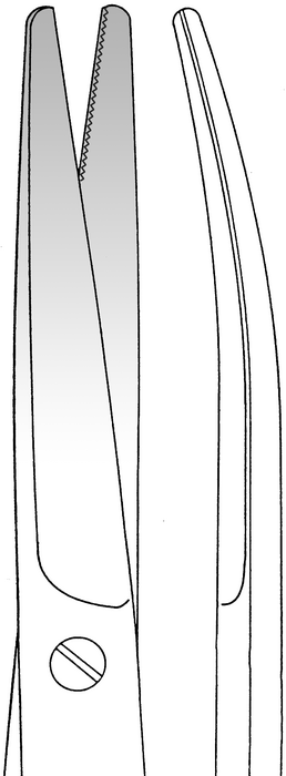 TC gold ligature scissors, curved, one tooth cuting edge, length 17 cm