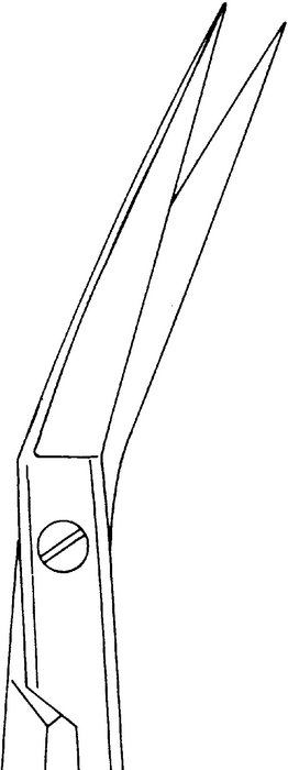 TC gold, iris scissors, pointed, pointed, 25° angled, length 11.5 cm