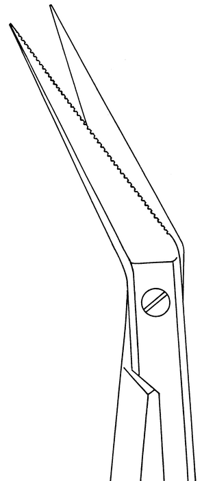TC gold, gum scissors, pointed, pointed, 25° angled, one cutting edge serrated, length 16 cm
