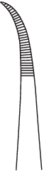 Splinter forceps, curved, serrated jaws, length 9 cm