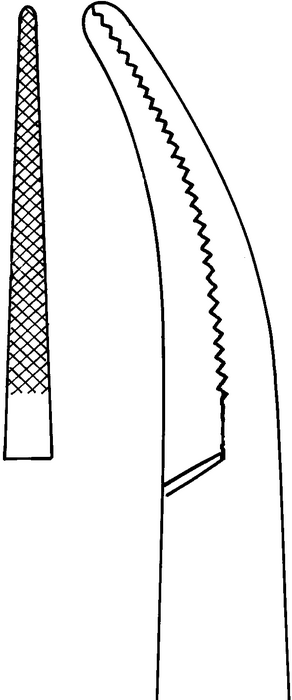 | Article text | Haemostatic forceps, acc. to Dandy Mosquito, laterally curved, length 12 cm |