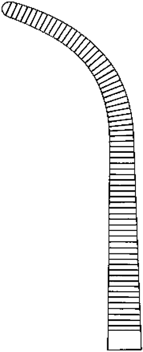 Forceps, acc. to Overholt-Fino, fine, curved, length 21.5 cm