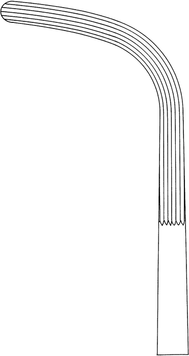 | Article text | Dissecting forceps, acc. to McQuigg-Mixter, angled, longitudinal serration, length 23.5 cm |