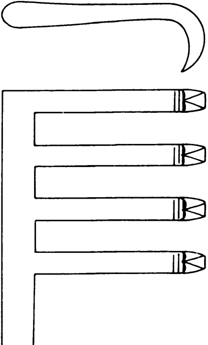 Woundspreader, sharp, 3 x 4 teeth, 55 mm, length 13.5 cm