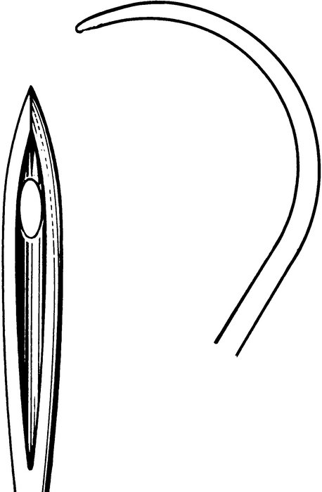 Ligature needle, acc. to Deschamps, sharp, for the left hand, length 20 cm