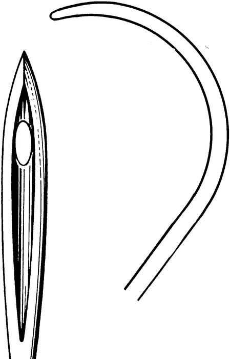 Ligature needle, acc. to Deschamps, sharp, for the left hand, length 27 cm