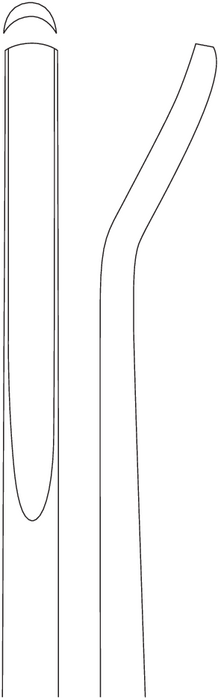 Gouge, acc. to Cobb, backwards curved, silicone coated handle, width 6 mm, length 28 cm