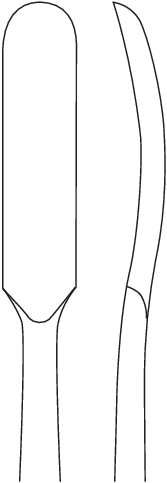Raspatory, curved, rounded working end, silicone coated handle, length 20 cm