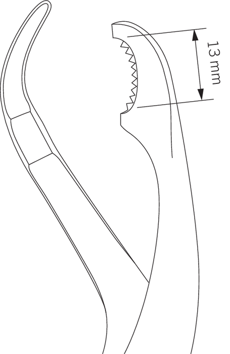 Bone holding forceps, acc. to Verbrugge, with ratchet, length of bone recording 13 mm, length 26,5 cm