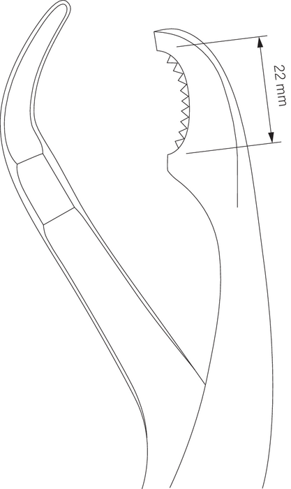 Bone holding forceps, acc. to Verbrugge, with ratchet, length of bone recording 22 mm, length 26.5 cm