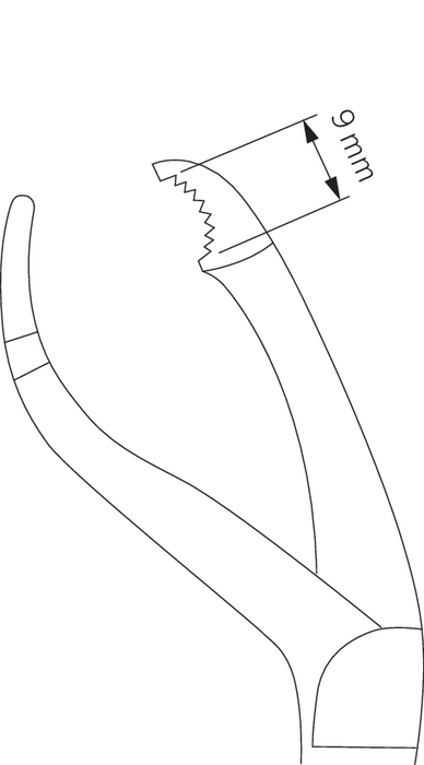 Bone holding forceps, acc. to Verbrugge, length of bone recording 9 mm, length 17.5 cm