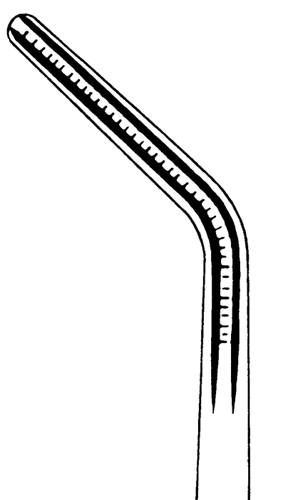 Atraumatic forceps, acc. to De Bakey, angled, width 2 mm, length 20 cm