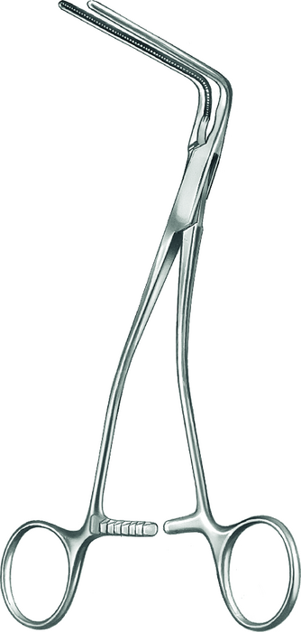 Multi purpose vascular clamp, Atrauma, acc. to De Bakey, angled, length 19 cm