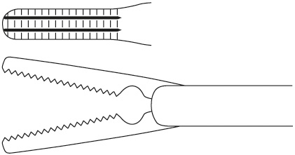 marCore® forceps, DeBakey, wide, double-action, shaft length 24 cm, mouth length 15 mm, Ø shaft 5 mm, length 36 cm, M
