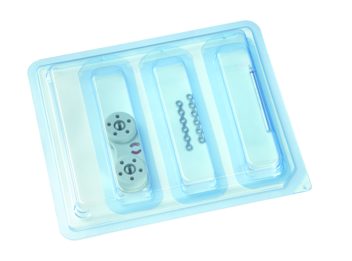 Sterile kit mini with 2 x mini plate 2.0, 4-hole, straight (25-550-04), 8 x maxDrive® screw 2.0 x 5 mm (25-872-05) and 1 x drill bit (25-449-05)