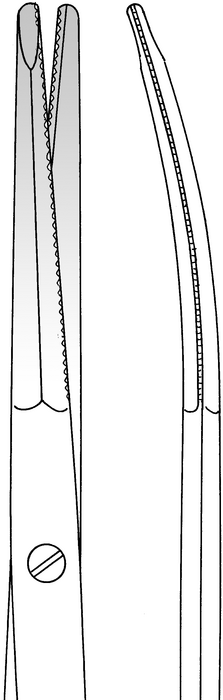 | Article text | Face-lift scissors, TC GOLD, acc. to Gregory, curved, serrated, length 14.5 cm |