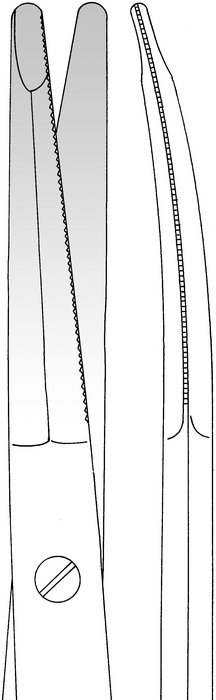 | Article text | Face-lift scissors, TC GOLD, acc. to Freeman, curved, one cutting edge serrated, length 23 cm |