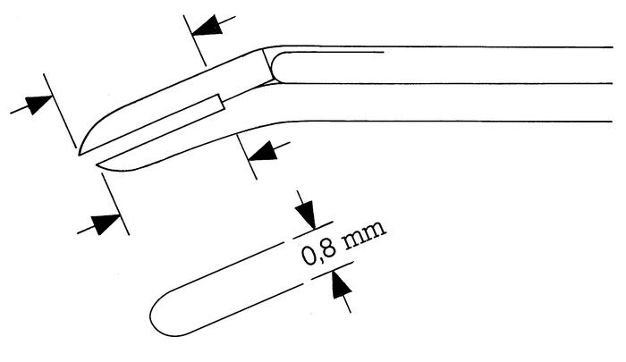 Wire bending forceps, acc. to McGee, angled, 6 x 0.8 mm, shaft length 8 cm
