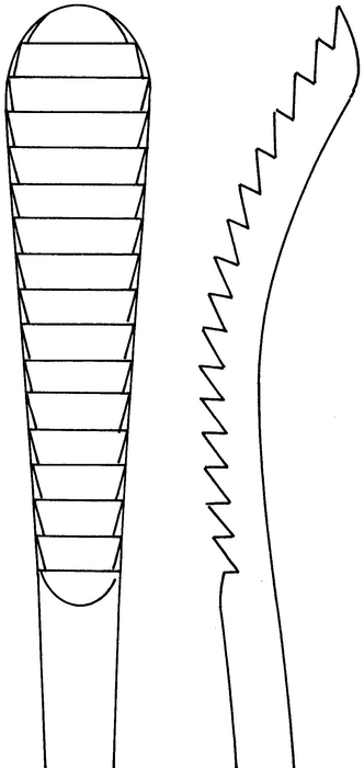 Glabellum rasp, acc. to Aufricht, pushing cut, 32 mm x 9 mm, length 21 cm
