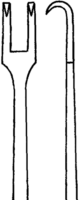 | Article text | Mucosal hook, 2 prongs, sharp, length 15 cm |