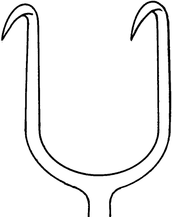 Mucosa hook, acc. to Joseph, 2 prongs, distance between prongs 10 mm, length 16 cm