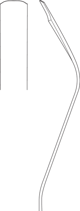 Retractor, acc. to Ishi, figure 3, working end width 14.5 mm, retractor blade thickness 1.25 mm, retractor blade thickness front 0.4 mm, total length 24 cm