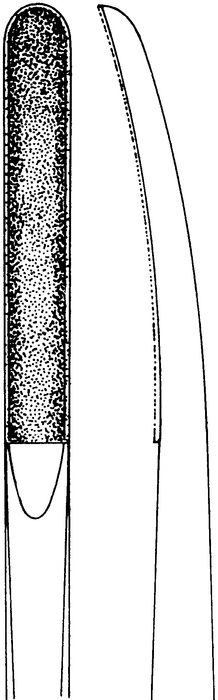 TMJ rasp, acc. to Dolwick, hollow, working end width 4.5 mm, total length 15 cm