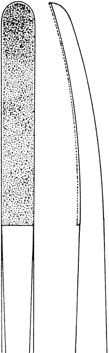TMJ rasp, acc. to Dolwick, flat, working end width 4.5 mm, total length 15 cm